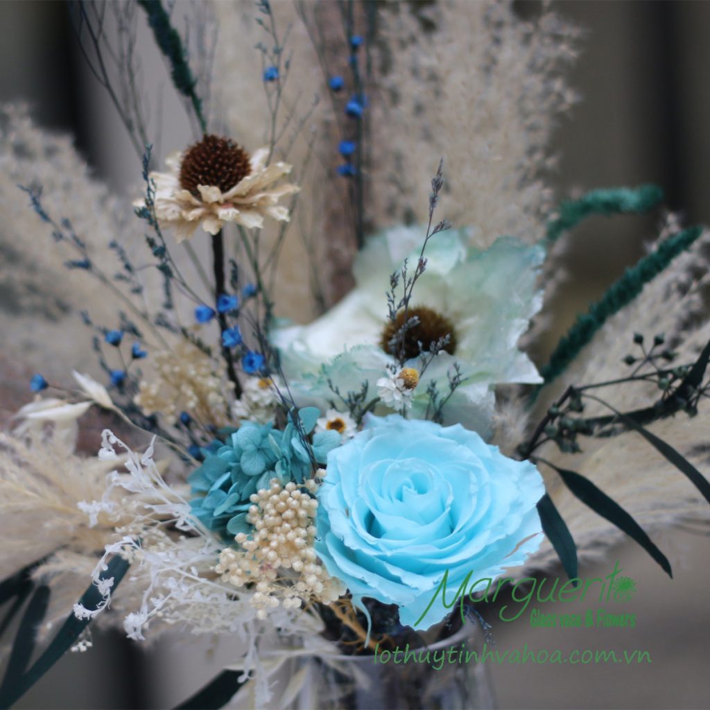 Hoa sau khi được thu hoạch đã qua xử lý bằng công nghệ Châu Âu, tẩm ướp màu đa dạng để bạn có thể thoải mái lựa chọn tông màu mà mình thích hoặc dựa theo những hoa mà mình phối trong lọ thủy tinh.